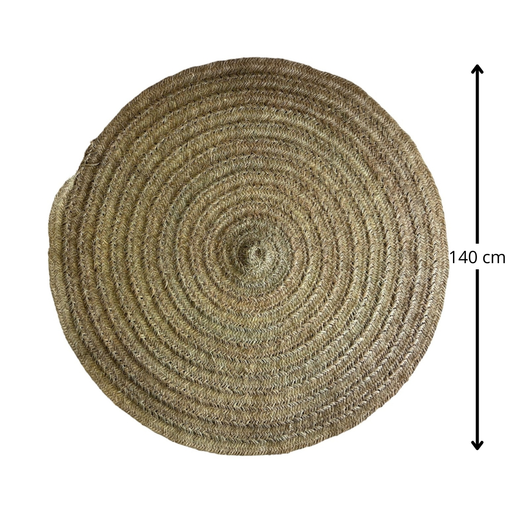 Gracias a su durabilidad y a su diseño circular, es perfecta para crear ambientes acogedores y naturales. Añade un toque ecológico y atemporal a tu hogar con esta alfombra de esparto hecha a mano: funcional, decorativa y 100% sostenible.