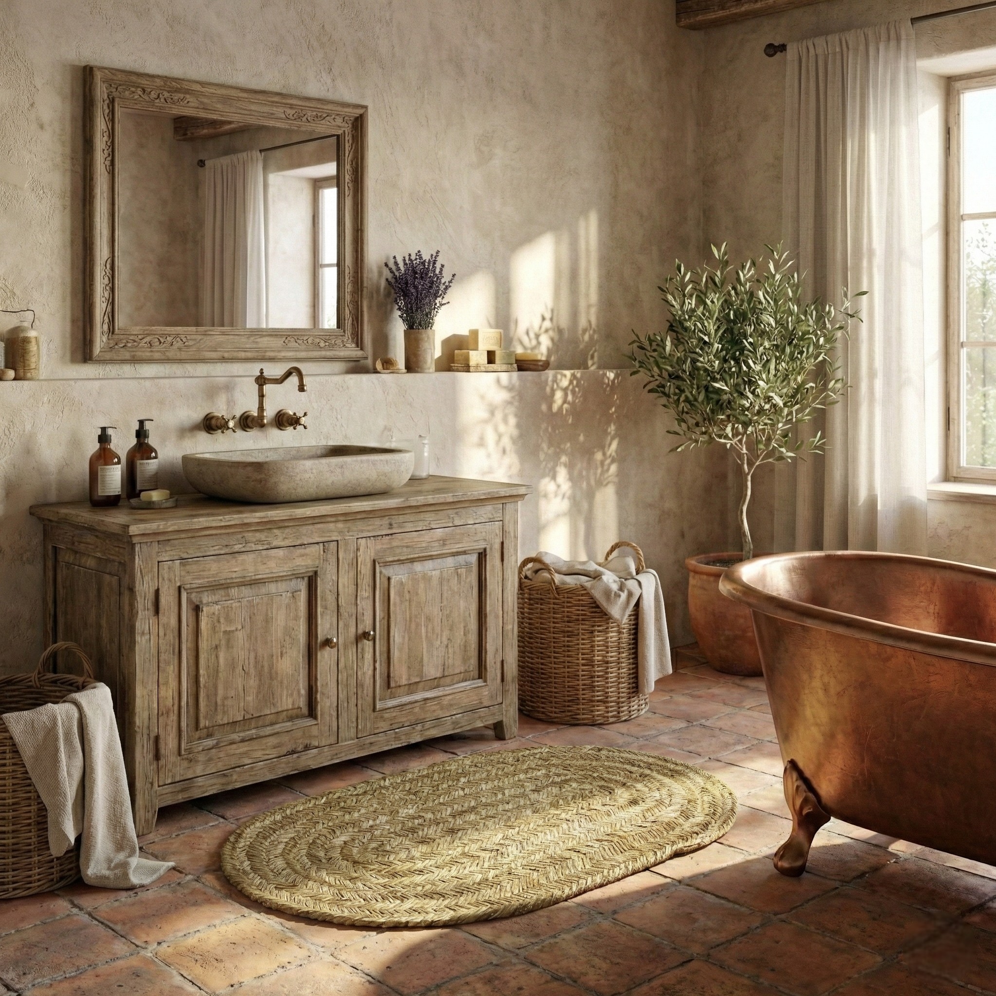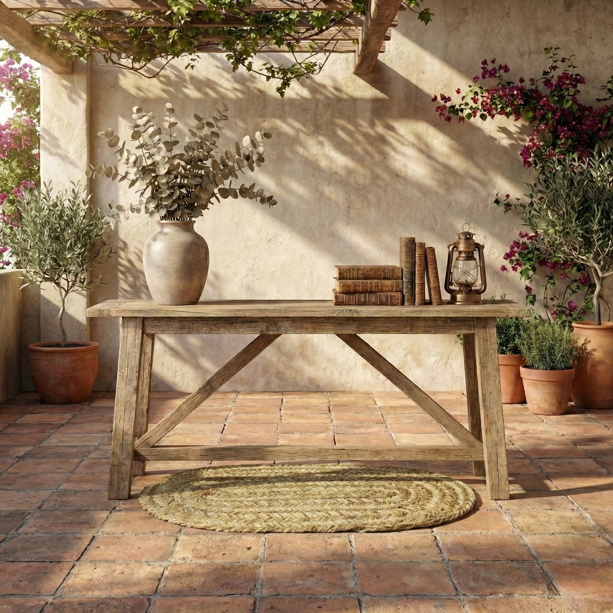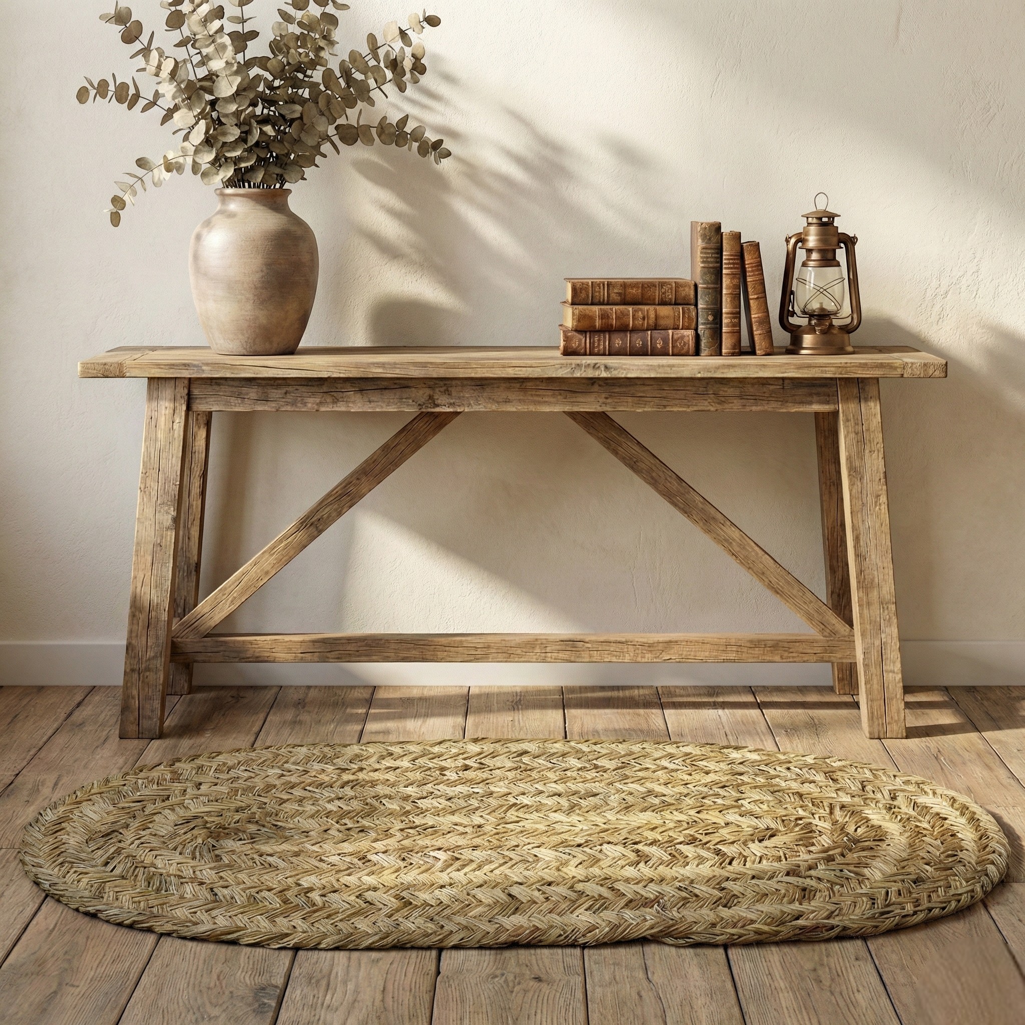 Queda perfecta en entradas, junto a la cama, en un pasillo, delante de un mueble o como base decorativa en un rincón con plantas. Y si quieres usarla en un porche o terraza, también funciona muy bien en exterior cubierto, aportando un toque natural sin recargar el ambiente. Su tamaño 80×45 cm es ideal para sumar detalle y orden visual en espacios pequeños o para combinar varias piezas en una composición.