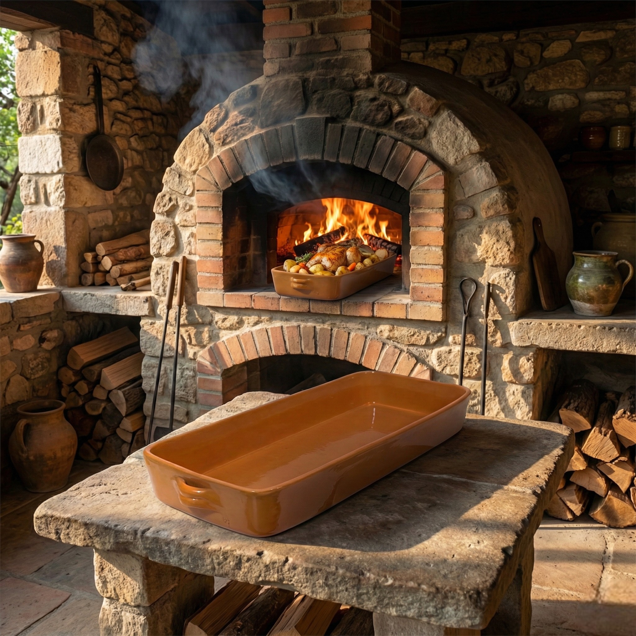 Esta fuente de horno de cerámica esmaltada es perfecta para cocinar en cantidad y servir con un look tradicional y elegante. Su formato rectangular extra largo (66 cm) y su altura de 10 cm te dan margen para recetas generosas: asados, verduras, patatas al horno, lasañas, canelones o platos familiares donde necesitas espacio y profundidad.