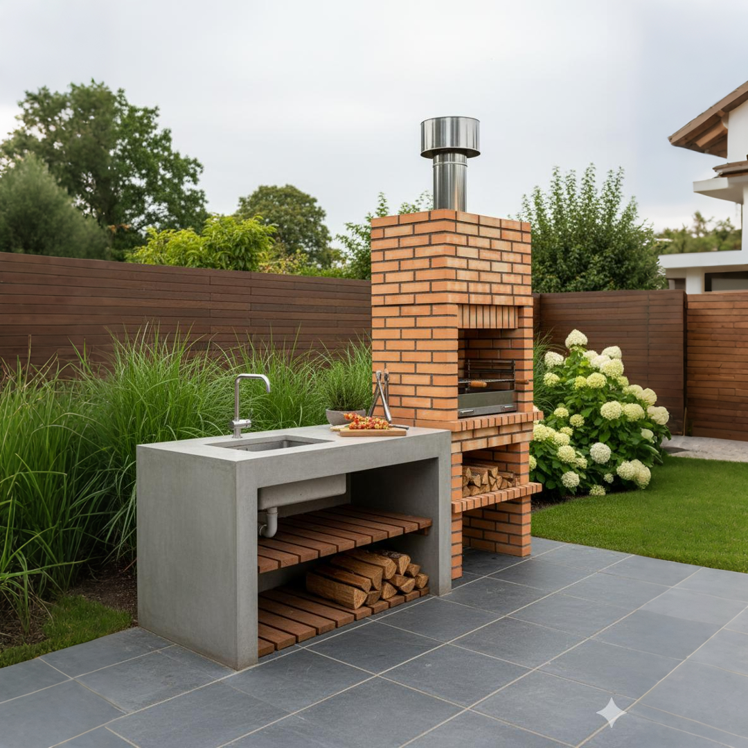Monta tu rincón de brasas definitivo con esta barbacoa de ladrillo refractario con chimenea, una opción robusta y muy decorativa para disfrutar de comidas al aire libre durante todo el año. Está fabricada con ladrillo refractario y es 100% resistente a exterior, pensada para convertirse en el centro de reuniones en jardines, terrazas y merenderos.