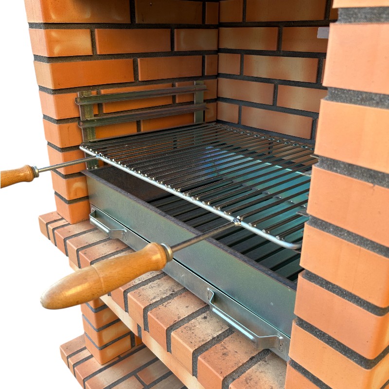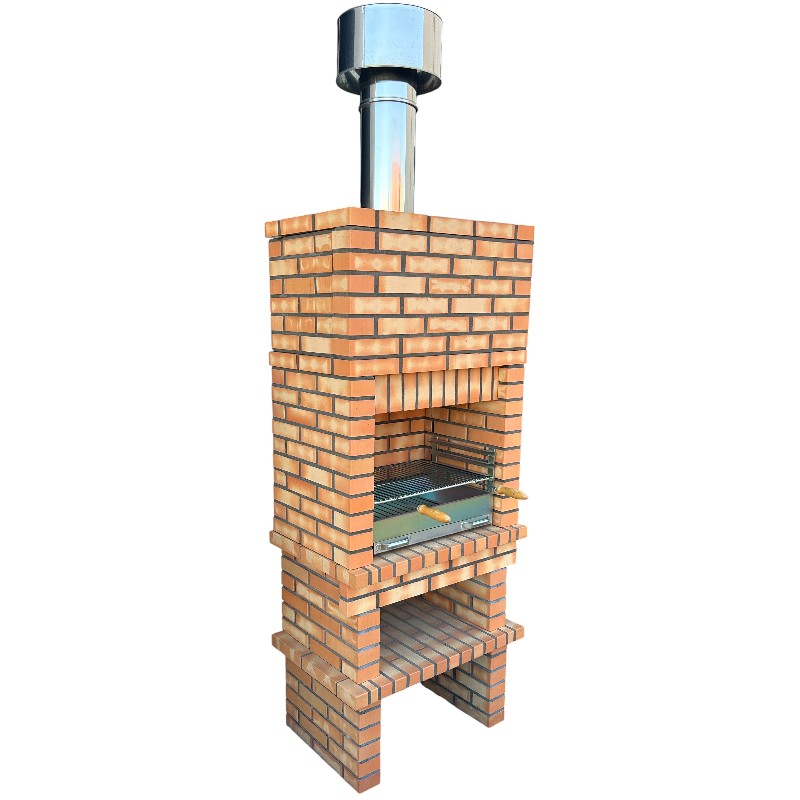 Material: ladrillo refractario + chimenea metálica + parrilla metálica.