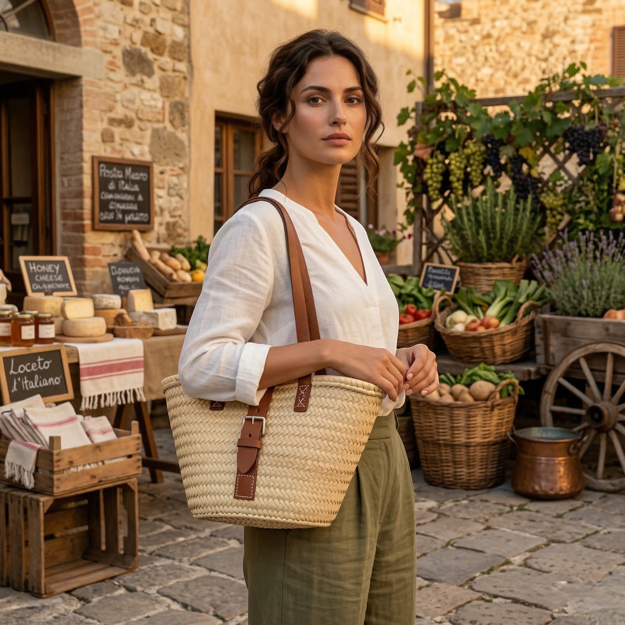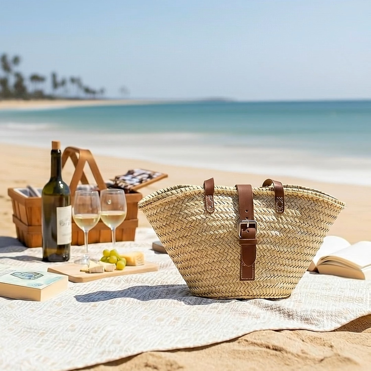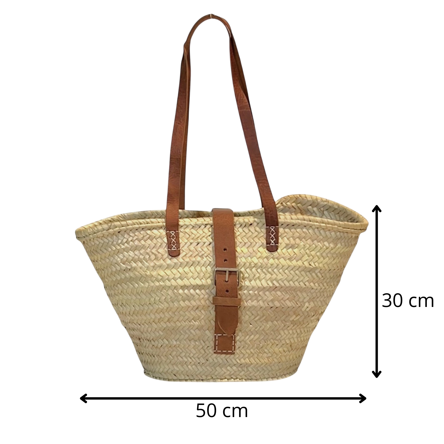 Este bolso de palma trenzada con detalles de cuero es un capazo amplio, ligero y con un estilo mediterráneo que combina con todo. Su tamaño lo hace perfecto para el día a día: playa, compras, mercado o escapadas, y las asas largas de cuero permiten llevarlo cómodamente al hombro.