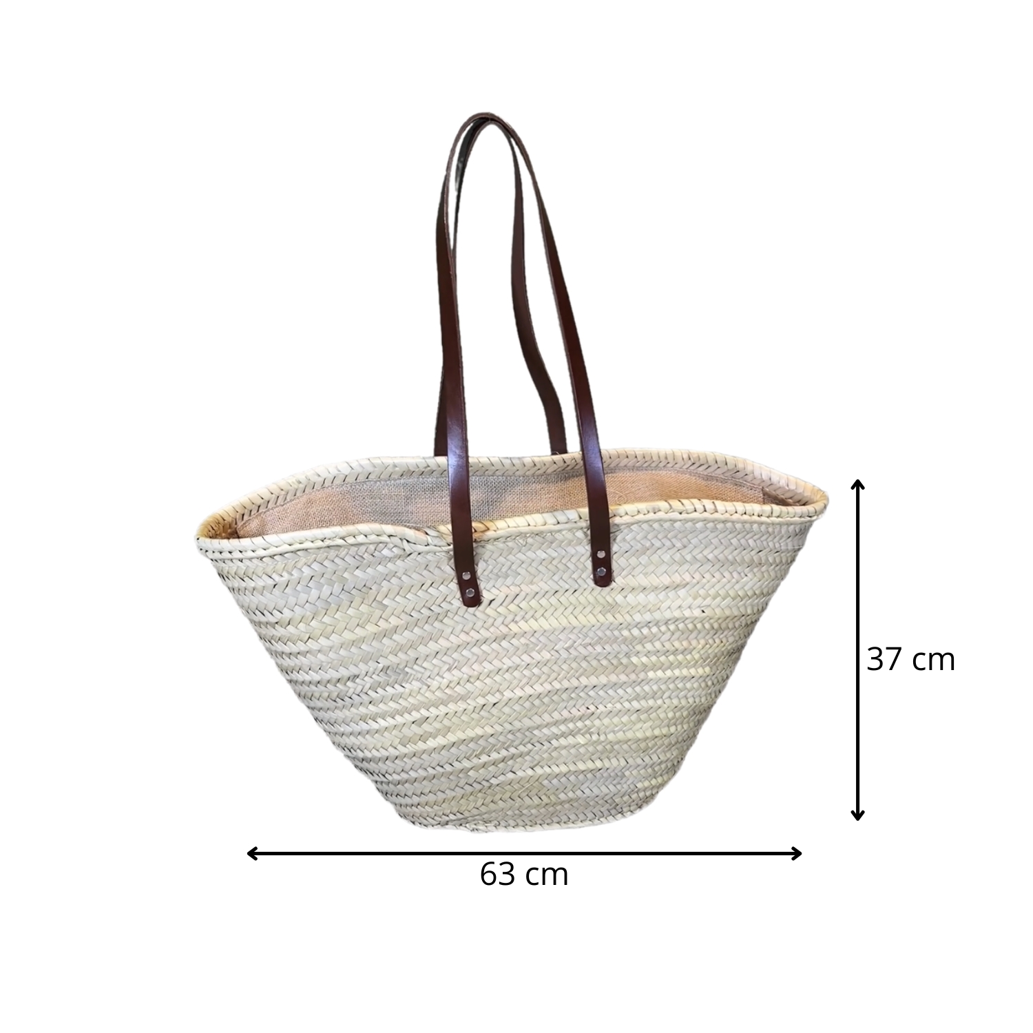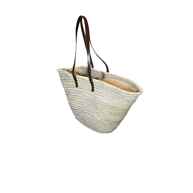 Colores disponibles: natural (color palma) con asas marrón cuero.