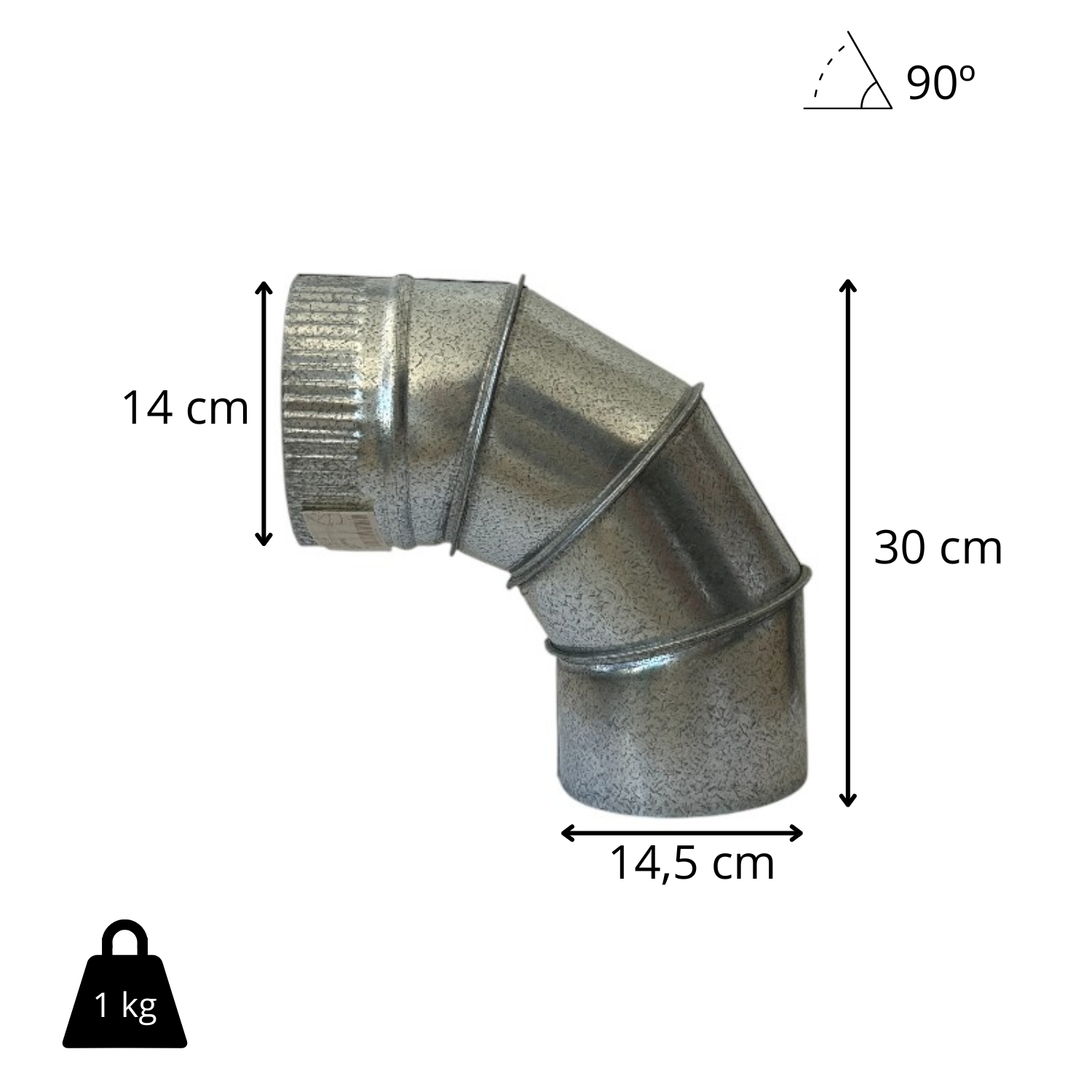 La conexión se realiza por encaje (diámetro de encaje 14,5 cm), lo que facilita el montaje por tramos y la compatibilidad con el resto de piezas del sistema (tubos rectos, tes, sombreretes, etc.). Al ser un codo fijo de 90°, ofrece un giro estable y una instalación visualmente ordenada, ideal para montajes donde el ángulo está claramente definido.