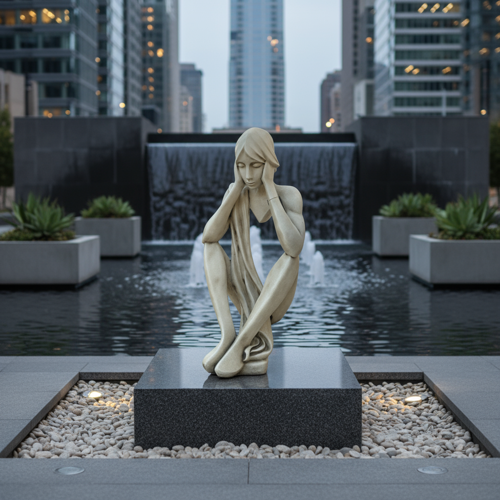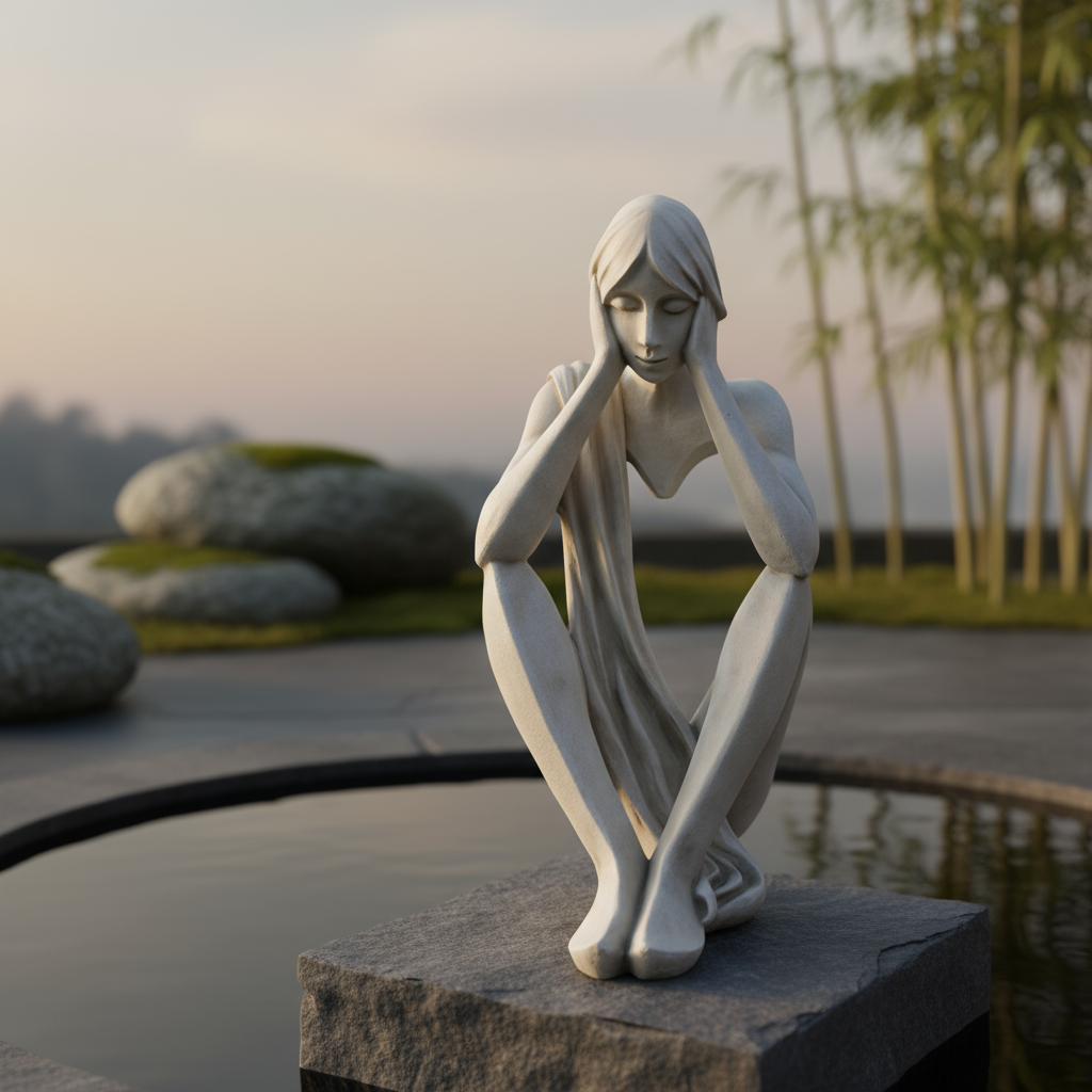 • Diseño: Figura femenina sentada de estilo moderno, líneas suaves y expresión serena