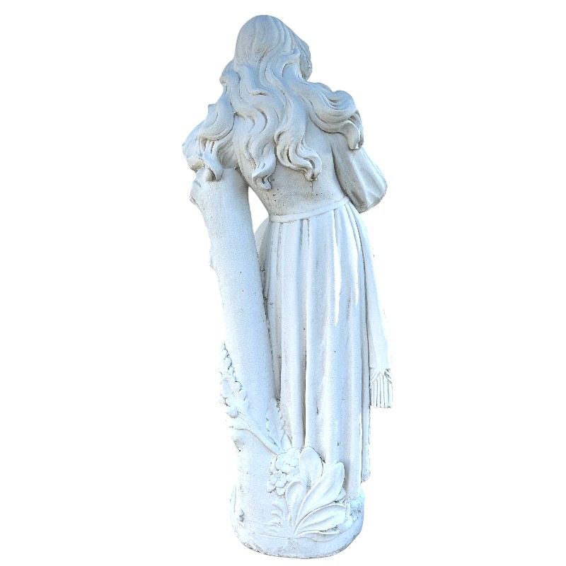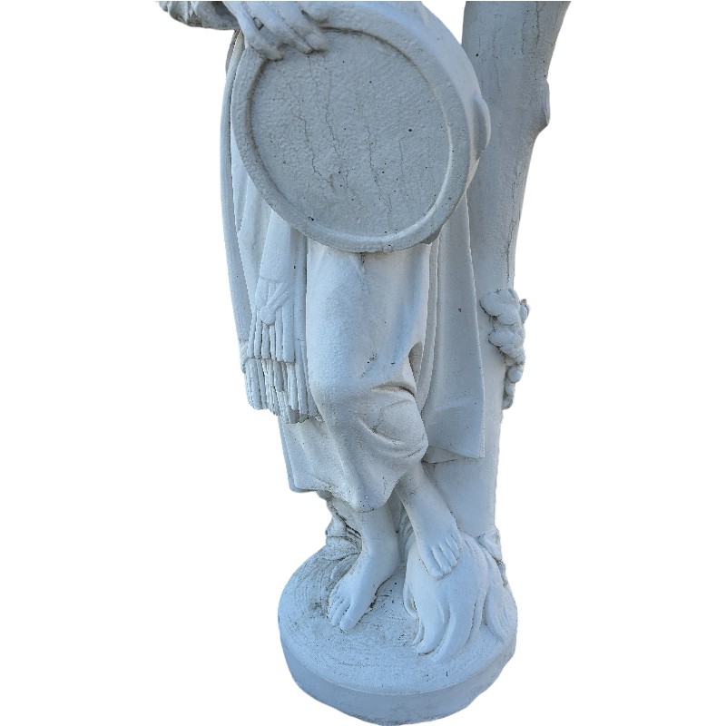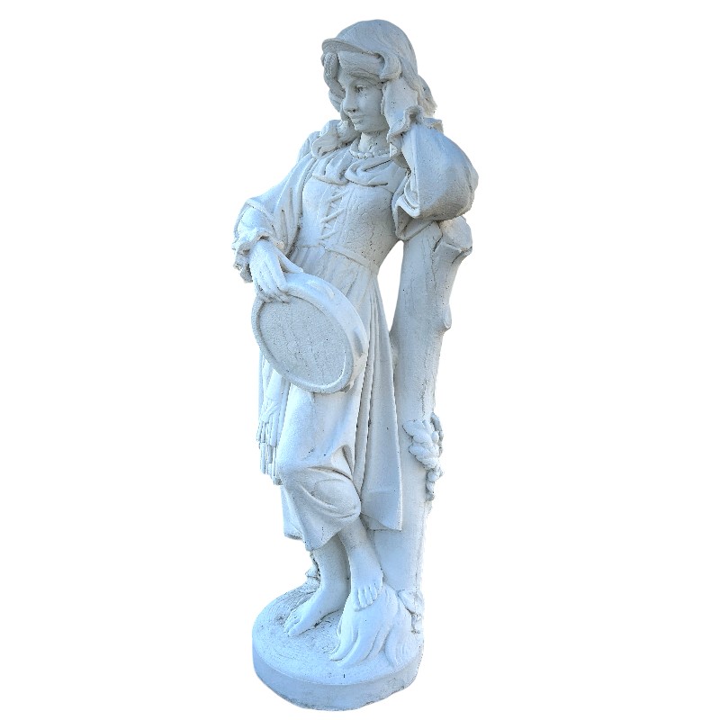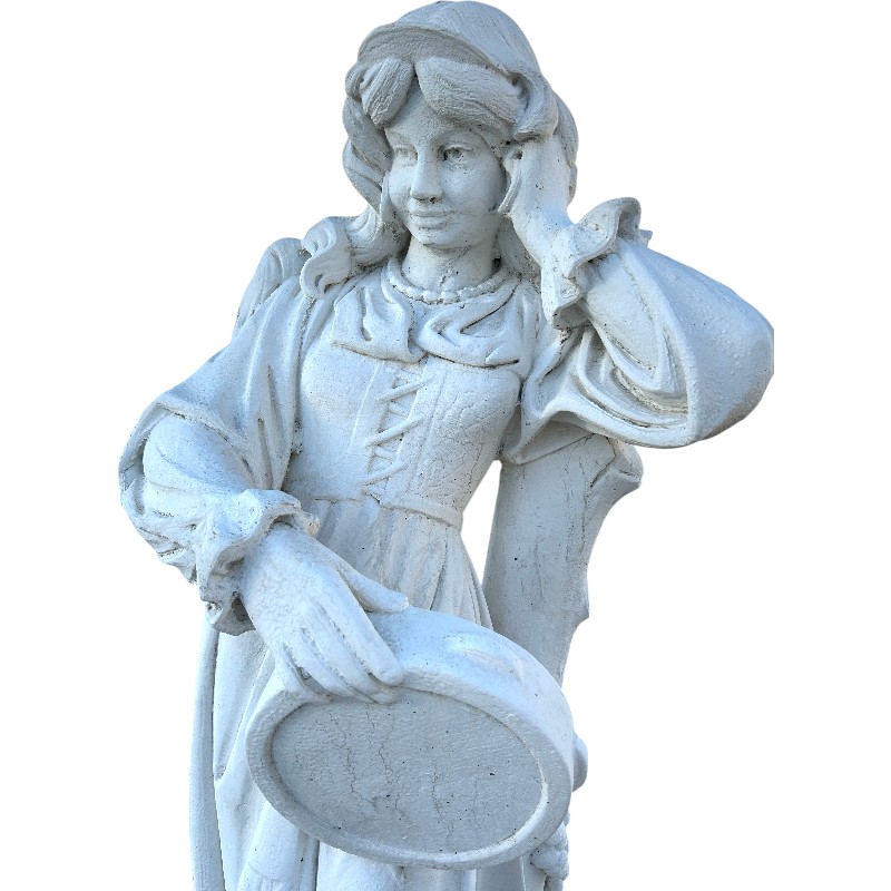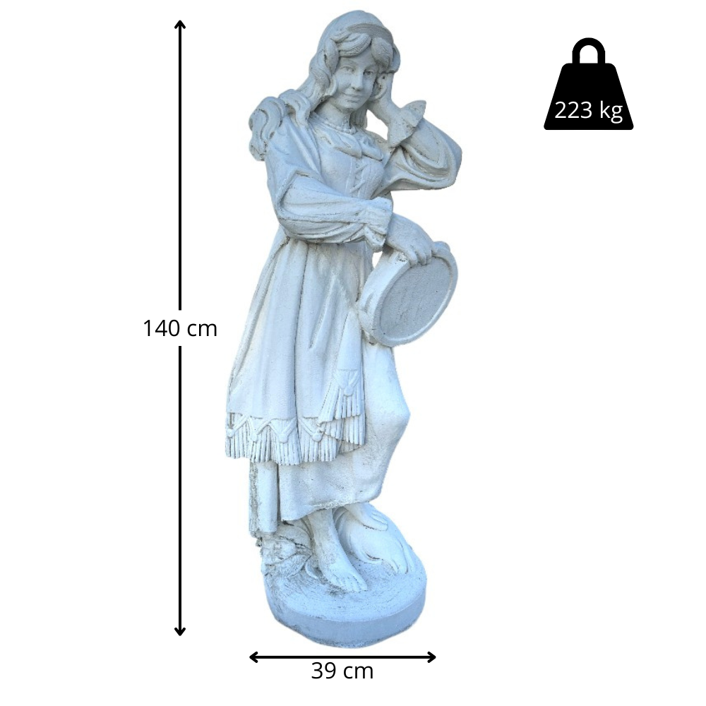 Esta escultura de mujer de piedra de 140 cm es una pieza clásica y elegante, perfecta para aportar un toque artístico y tradicional a exteriores con personalidad. La figura, con su vestimenta detallada y la pandereta, tiene un aire romántico y decorativo que encaja genial en entradas, jardines y patios.