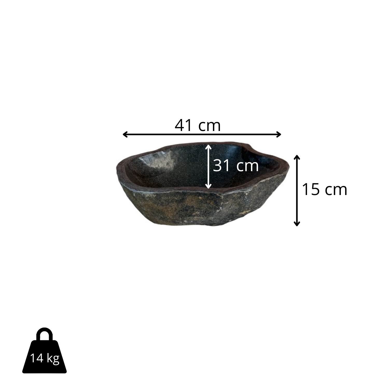 Con 41 cm de largo, 31 cm de ancho y 15 cm de alto, tiene un formato equilibrado para baños principales y aseos con estilo, aportando personalidad sin recargar. Además, su peso (14 kg) transmite solidez y calidad, ideal si buscas un lavabo premium y duradero. Queda espectacular combinado con madera, microcemento, piedra clara o encimeras de tonos neutros, y encaja igual de bien en baños contemporáneos como en ambientes más cálidos y naturales.