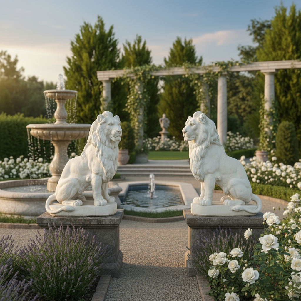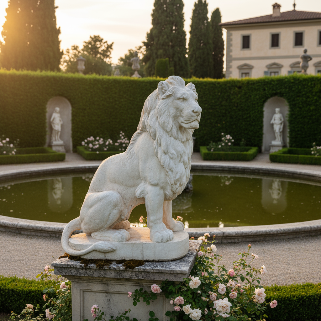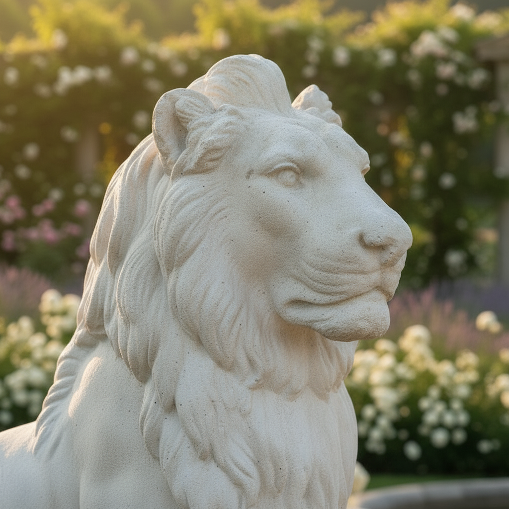 Esta escultura de león de piedra es una pieza imponente para quien quiere dar presencia y carácter a una entrada, un porche o un jardín. Su postura sentada y la melena trabajada transmiten fuerza, protección y elegancia, convirtiéndola en un auténtico “guardián” decorativo.