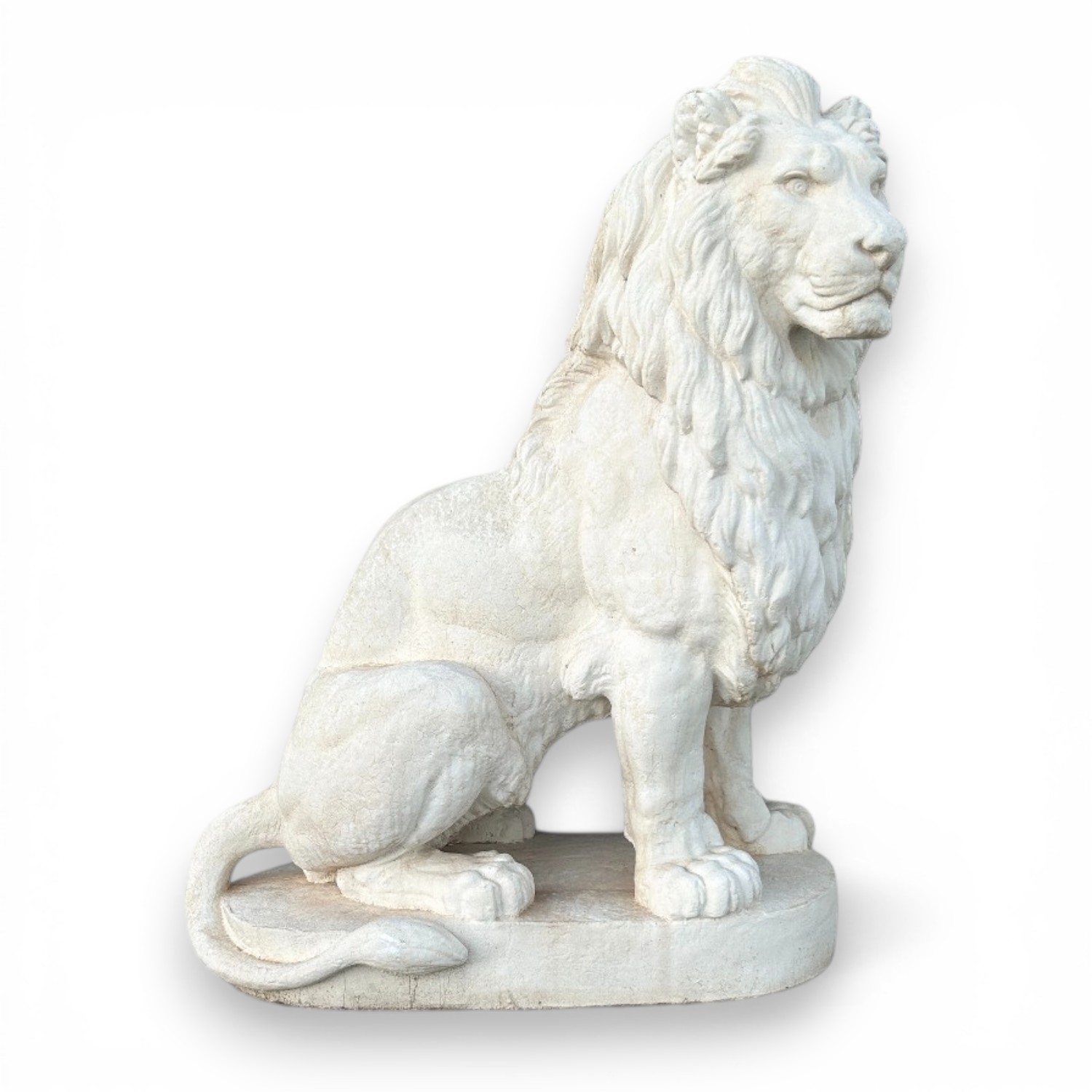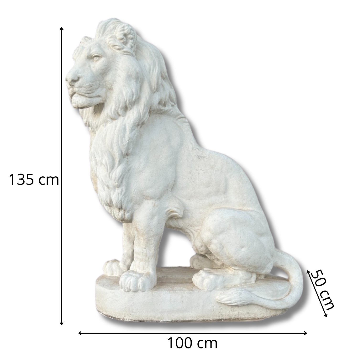 Diseño: León sentado sobre base, con melena detallada