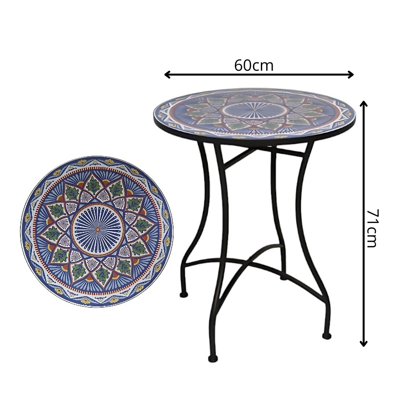 Mesa redonda de forja con mosaico alhambra azul – 60x71cm