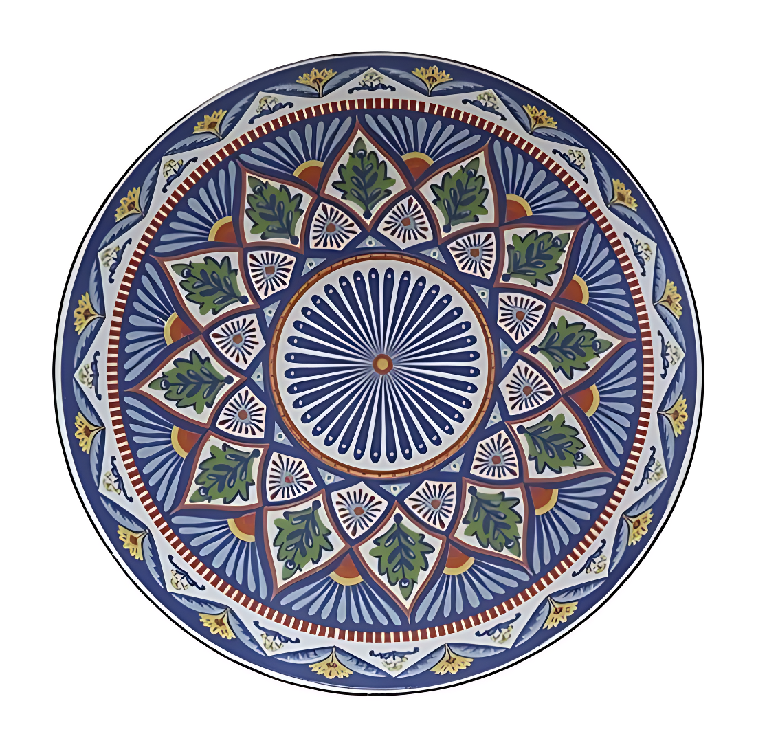 Diseño: redondo con patrón decorativo en mosaico.