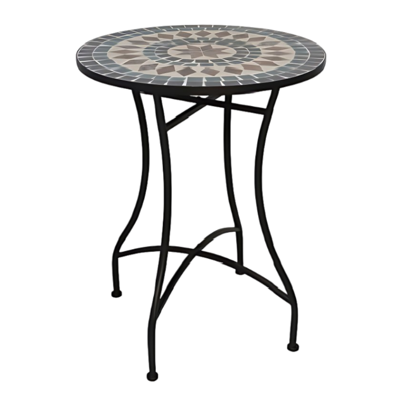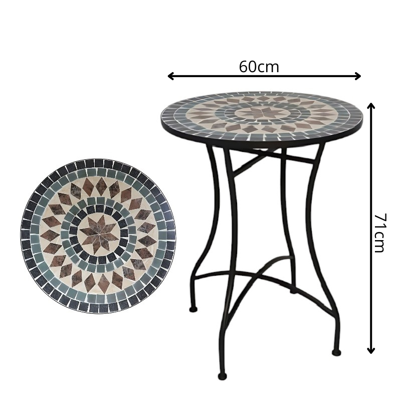 Mesa redonda de forja con mosaico estrella árabe – 60x71cm