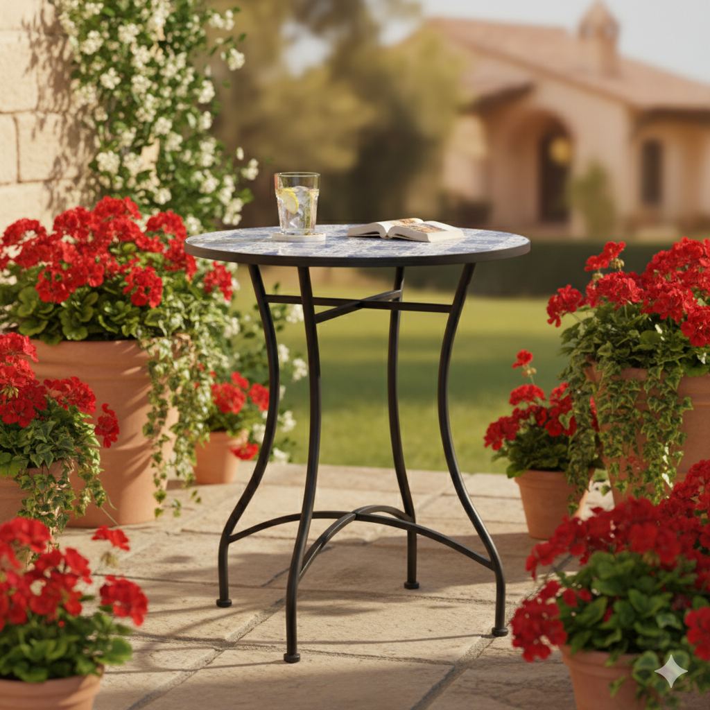 En general, es una mesa de estilo rústico y mediterráneo, ideal para interiores acogedores o para colocar en una terraza, jardín o balcón.