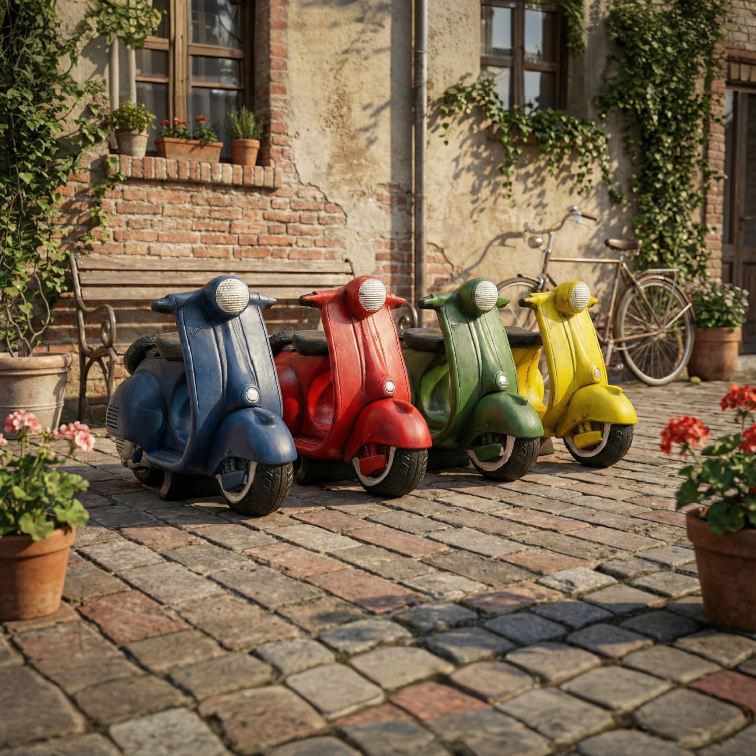 Si buscas una figura decorativa original para exterior, una decoración con aire retro o un detalle especial para un negocio (bar, restaurante, hotel, casa rural o escaparate), esta Vespa es de esas piezas que llaman la atención a primera vista y aportan un punto alegre, nostálgico y muy mediterráneo.